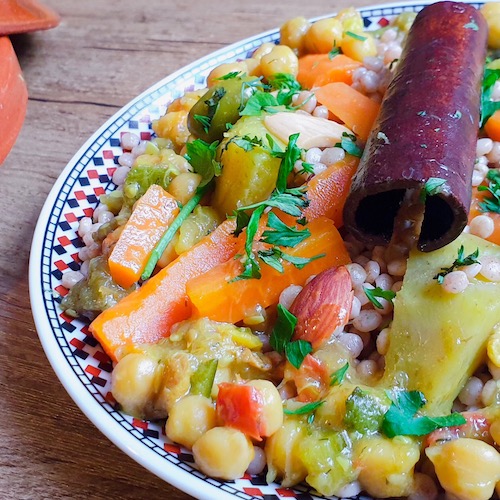 | 4. Als je de stoof serveert met parelcouscous, kook je deze volgens de verpakking. |