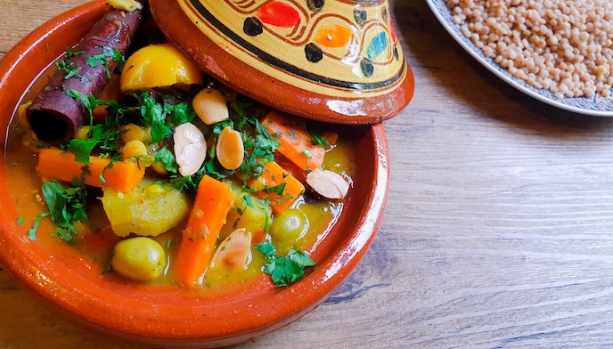 | 7. Hak de peterselie en amandelen. Strooi over de stoof en serveer met de couscous of brood. |