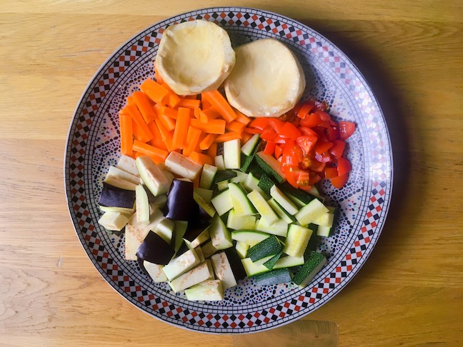 Door de stoof gaan wortel, courgette, aubergine en artisjokken. Artisjokken een gedoe of geen fan van aubergine? Je kunt er doorheen doen wat je lekker vindt. Let alleen op dat je stevige groenten wat eerder er doorheen doet dan zachtere groenten.