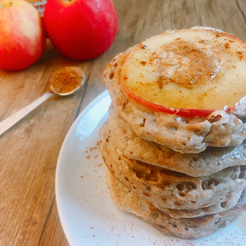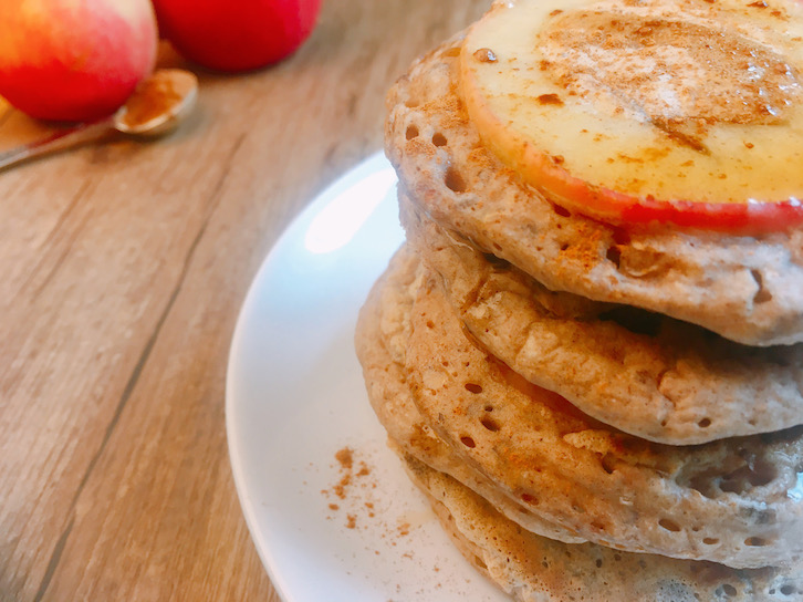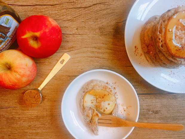 De pannenkoeken moeten op niet te hoog vuur gebakken worden. Hierdoor heeft de appel de tijd om te garen, voordat de pannenkoeken een mooie goudbruine kleur krijgen. Aan het einde doe je nog wat extra kaneel erover en eventueel ahornsiroop. Appel met kaneel is natuurlijk een top combinatie en past goed bij de herfst. Maakt de regen buiten een beetje goed.