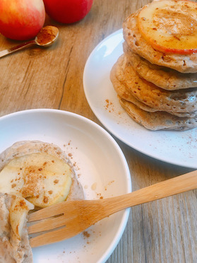 Door de pannenkoeken gaan lijnzaad en volkoren tarwemeel. Hierdoor zitten er veel vezels in en is het dus een prima ontbijt. Daarnaast gaat er geen suiker doorheen. Toch hebben de pannenkoeken een zoete smaak, door de banaan die door het beslag gaat en de appelschijf erop. De banaan zorgt er daarbij ook voor dat de pannenkoeken lekker smeuïg worden. De pannenkoeken lukken ook prima zonder, maar ik vind dat de banaan het toch wel extra lekker maakt.