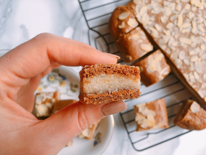 Eigenlijk wilde ik andere koekjes maken van amandel, maar in de sinterklaasperiode hoort natuurlijk gevulde speculaas. Deze variant is vegan, met een lekkere dikke laag smeuïg spijs.