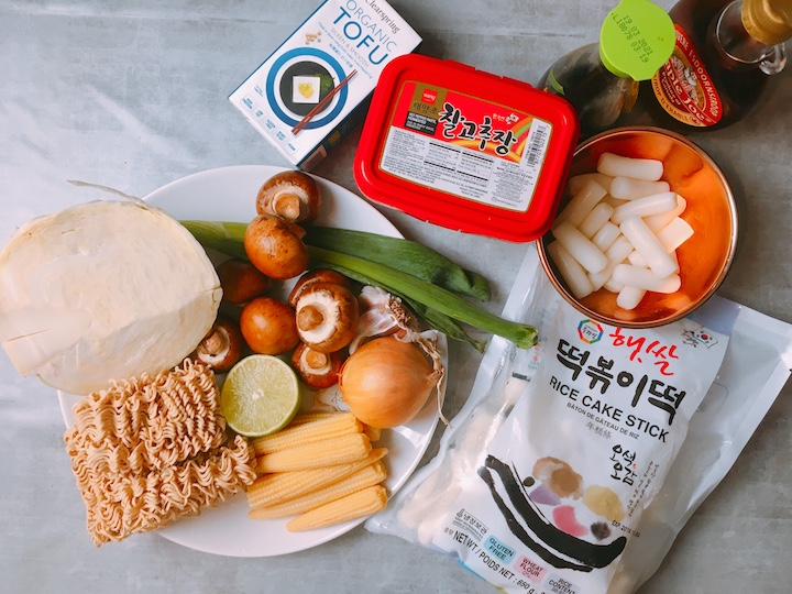 Belangrijk voor dit recept zijn dus de rice cakes en gochujang. Beide vind je in de Aziatische supermarkt. Rice cakes hebben geen sterke smaak, maar hebben een kleverige, chewy, textuur. Gochujang is een pittige peperpasta die ik vaker gebruik. Voeg zoveel toe als je zelf lekker vindt.