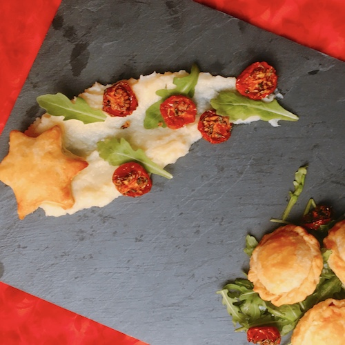 We mogen weer uitsloven met kerst. Mijn voorgerecht voor dit jaar: champignon pasteitjes met pastinaakpuree. Bros deeg met een vulling van champignons. Daarbij pastinaakpuree, rucola en zoete gedroogde tomaatjes.