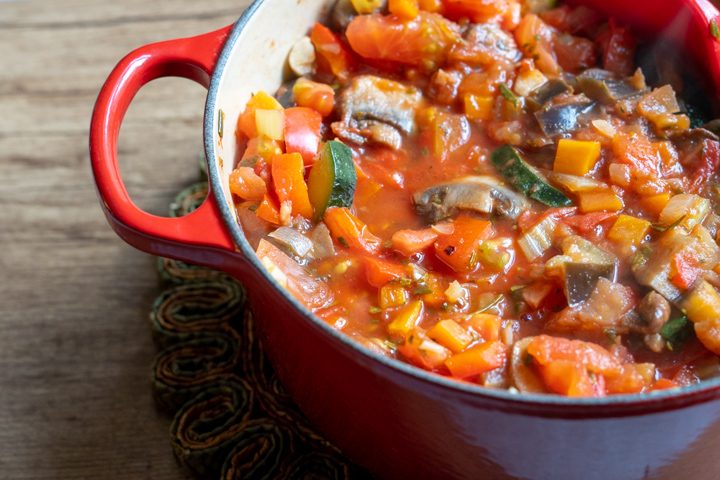 Een recept voor tomatensaus kan niet ontbreken. Ideaal om in te vriezen en zo altijd een gezonde saus voor bij pasta bij de hand te hebben. Verse tomaten, aubergine, courgette, champignon. Deze tomatensaus zit vol vitamines. Ook super lekker bij Spaanse tortilla trouwens.