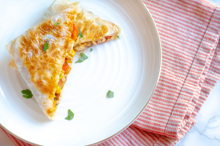 Ja, soms ben je erg blij met een recept. Dat heb ik met deze filodeeg pakketjes. De buitenkant is krokant en de vulling lekker romig. Met zoete mais en paprika en licht rokerige tofu. En, geen oven nodig.