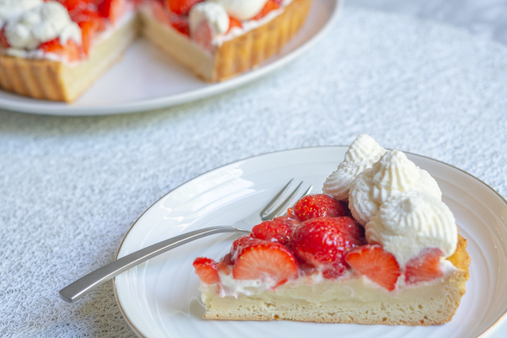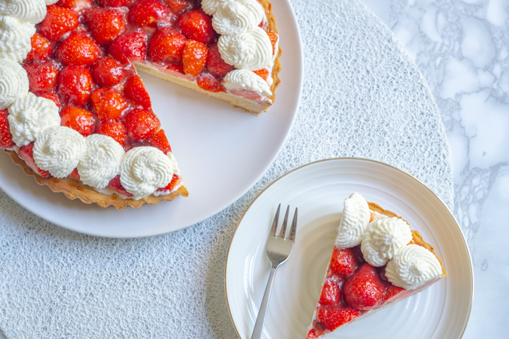 Voor mijn moeders verjaardag maakte ik laatst een aardbeienvlaai. Dé taart voor in de zomer. De taart heeft een luchtige bodem, een romige vulling van banketbakkersroom en daarop heel veel zoete aardbeien.