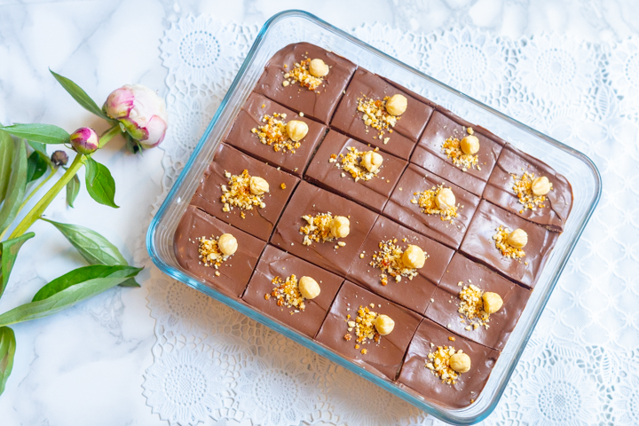 | 12. Versier de bovenkant eventueel met wat nougatine en/of extra hazelnoten. |