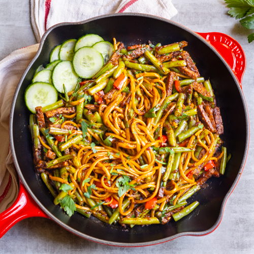 Vaak worden er bij Surinaamse bami wat bijgerechten geserveerd. Altijd lekker natuurlijk, maar ik heb hem zo gemaakt dat je met alleen dit recept ook een volwaardige maaltijd hebt. Serveer er wat plakjes komkommer bij of, al helemaal lekker, wat zoetzure komkommer en je maaltijd is af.