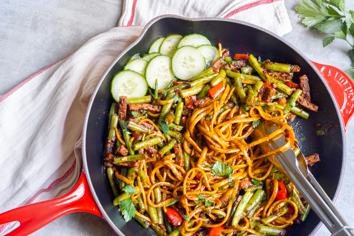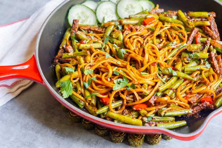 Ook wel eens Surinaamse bami afgehaald? Ik vind het altijd erg lekker, maar je kunt het ook prima thuis maken. Ik doe er wat boontjes doorheen en tempeh. Zo heb je een gezonde vegan maaltijd, die je prima doordeweeks kunt eten.