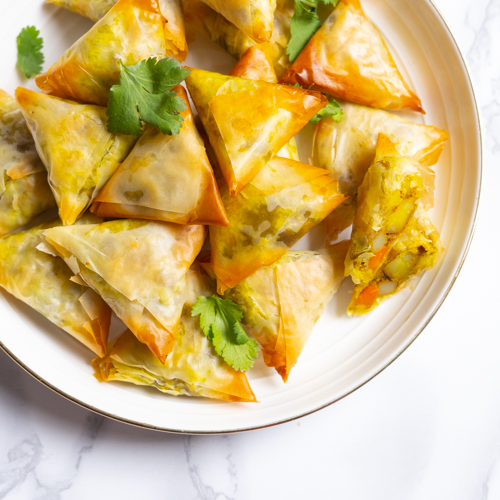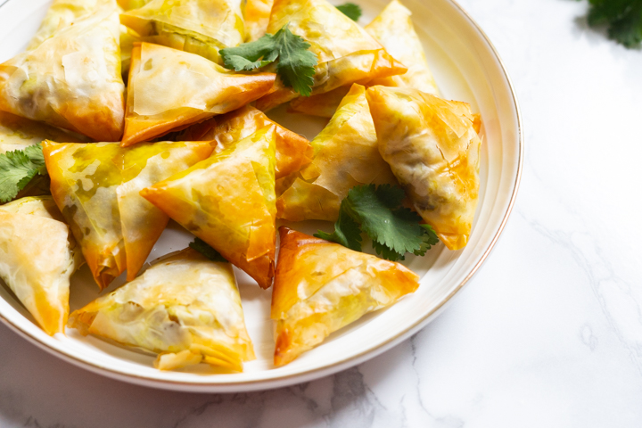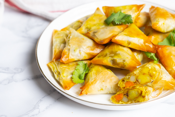 Samosas zijn Indiase pasteitjes. Ze hebben een kruidige vulling in een krokant deeg. Samosas frituur je normaal gesproken, maar ik bak ze in de oven. Ook maak ik het mezelf iets makkelijker, door filodeeg te gebruiken.
