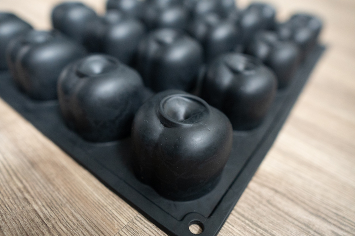 | 5. Doe het mengsel in een silicone bolletjes vorm en doe in de vriezer. Laat minstens 2 uur bevriezen. |