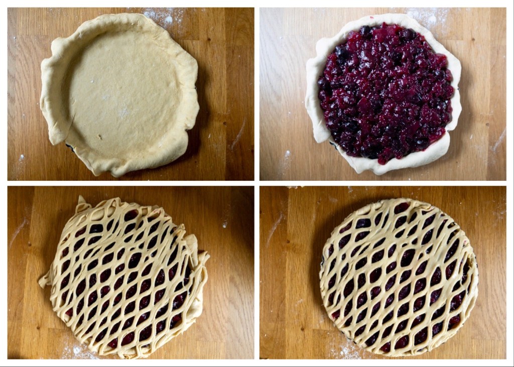 | 10. Rol de rest van het deeg uit, iets kleiner dan de taartvorm. Maak het raster met een rasterwieltje. Trek het deeg wat uit elkaar, zodat je de gaatjes ziet en leg het over het deeg. |