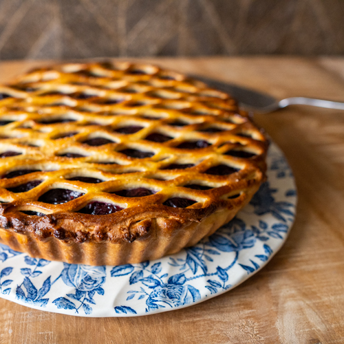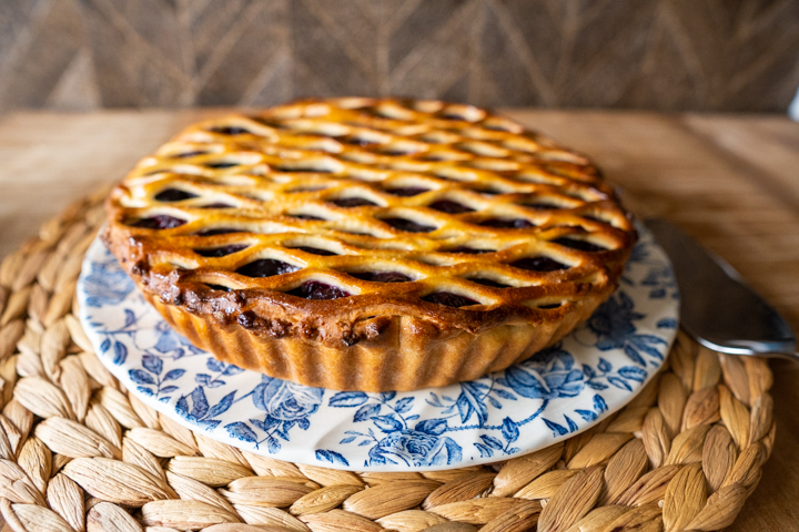 Dit vind ik een van de lekkerste vlaaien, de kersenvlaai. Luchtig vlaaideeg, met een fruitige vulling van kersen. Je kunt de vulling kant-en-klaar kopen, maar zelfgemaakt met diepvrieskersen is ook erg makkelijk. Hij is vegan, maar ik geloof echt niet dat iemand dat zou proeven.