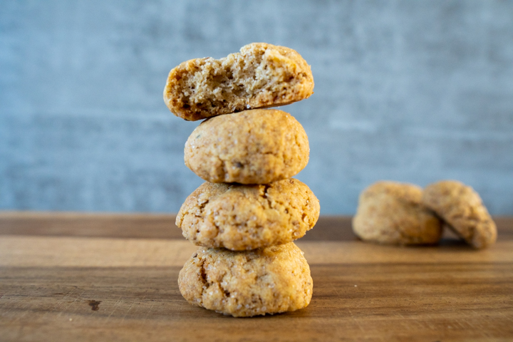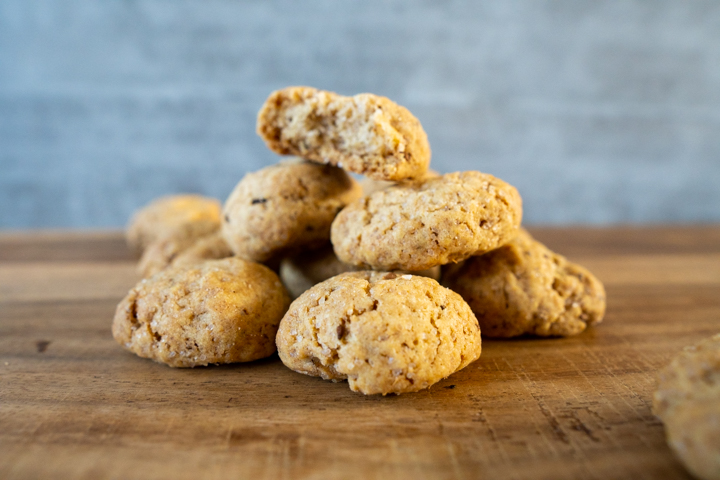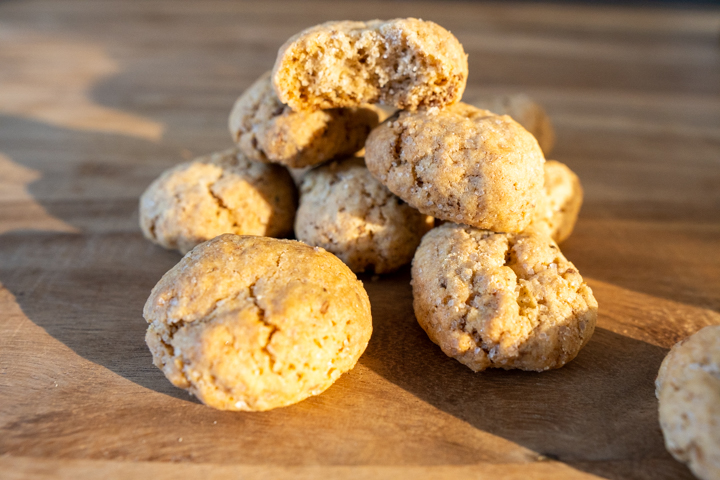 Het is een super makkelijk koekje om te maken. Alle ingrediënten doe je in de kom van een mixer. Je mixt het kort door, tot het net gemengd is. Dan wikkel je het deeg in plasticfolie en laat je het een half uur rusten in de koelkast. Vervolgens maak je er kleine bolletjes van. Dit gaat een stuk sneller dan bij pepernoten, want ze zijn ongeveer twee keer zo groot.