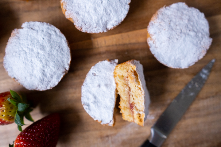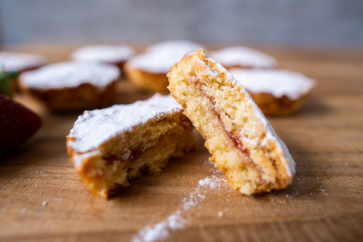 Ik had sneeuwwitjes nog nooit gegeten, maar wilde ze gelijk namaken. Het zijn een soort kokosmakronen, gekruist met een roze koek. Daarin zit een vulling van jam. Super lekker, maar uit de winkel vond ik ze te zoet. Dat is het fijne aan zelf maken. Het kan precies naar je eigen smaak.