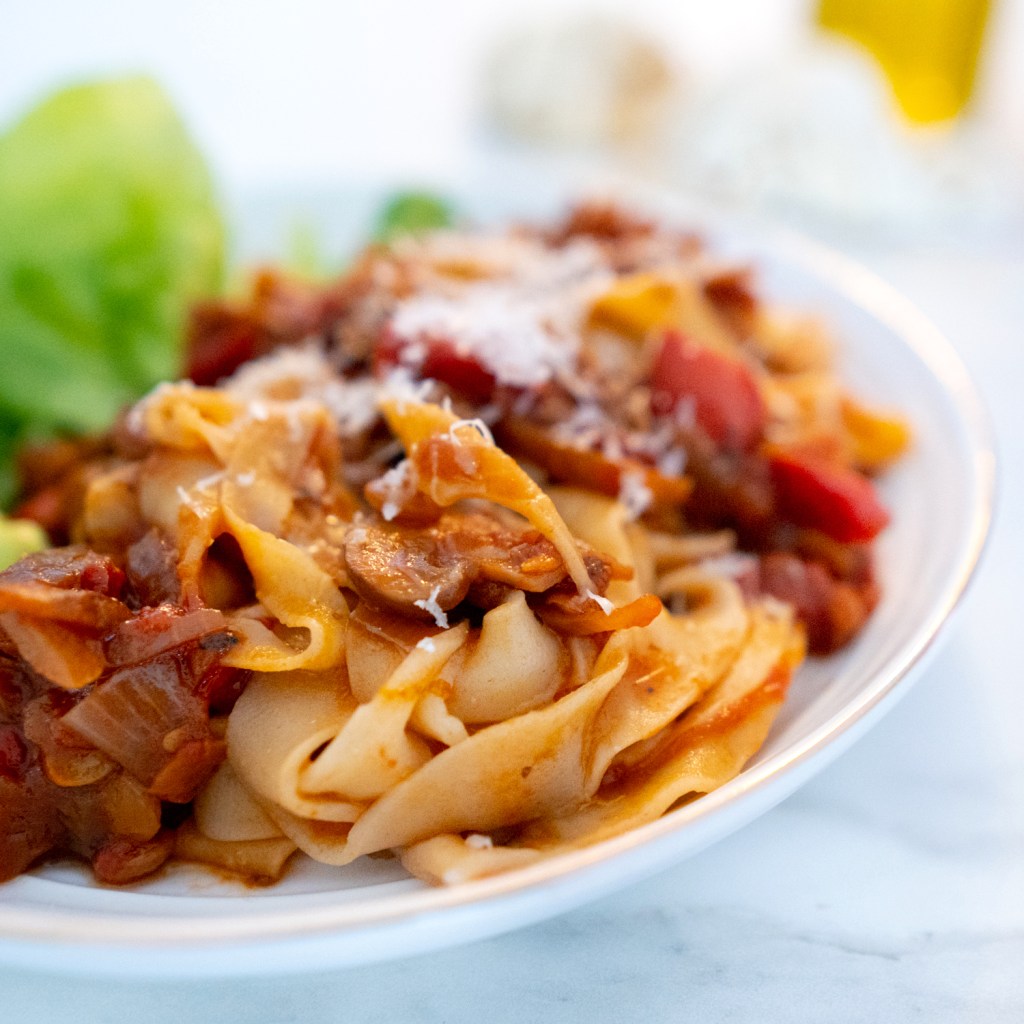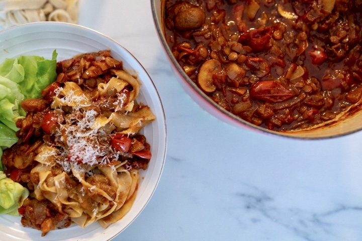 In de winter vind ik een stevige saus met pasta erg lekker. Pan op het vuur en een uur zachtjes laten pruttelen. Je weet dat het lekker wordt. Vaak zit er in zo’n saus vlees, maar linzen zijn een goed alternatief. Ze hebben ook een warme en stevige smaak en kunnen prima een tijd mee stoven. En het allerlekkerst is het natuurlijk om er verse pasta bij te eten.