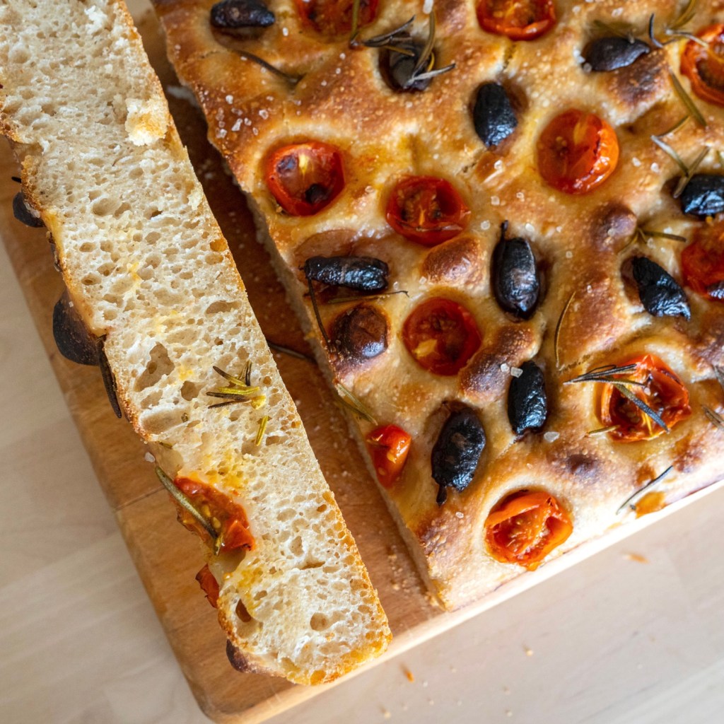 Na een tip uit Italië is dit recept helemaal af. Luchtige en zachte focaccia, met een krokante buitenkant en lekkere topping. Ik maak dit brood heel regelmatig. Net als met veel desem recepten heb je wat geduld nodig, maar het is dan altijd zoveel lekkerder.