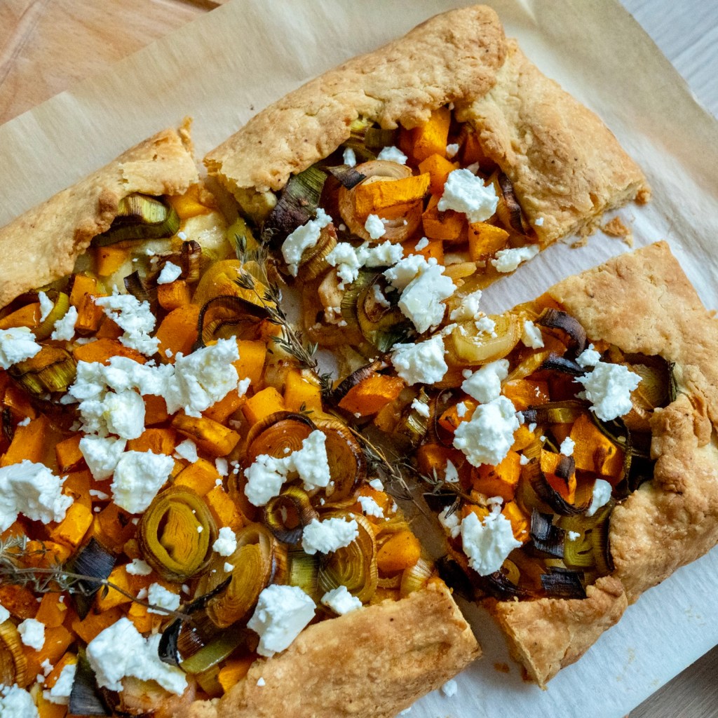 Een plaattaart is vaak redelijk snel te maken en je kunt met de toppings alle kanten op. Het deeg voor de bodem maak ik zelf en gebruik ik altijd voor hartige taarten. Het deeg kneed je kort, zodat er kleine stukjes boter in het deeg blijven. Dit zorgt ervoor dat de bodem lekker bros is. Op de bodem doe ik dit keer pompoen, prei en feta. De plaattaart is een maaltijd op zich, maar ik vind een salade er altijd wel lekker bij.